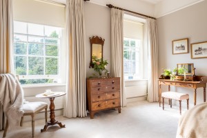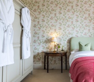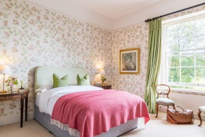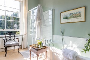 Whyso Mayo is a bedroom of the equal size to Arkle. This room enjoys the most splendid view in the entire house, looking out over both the gardens and adjacent fields. This bedroom shares a “Jack and Jill” bathroom with the adjoining room Golden Grove Zara making it an ideal family suite.